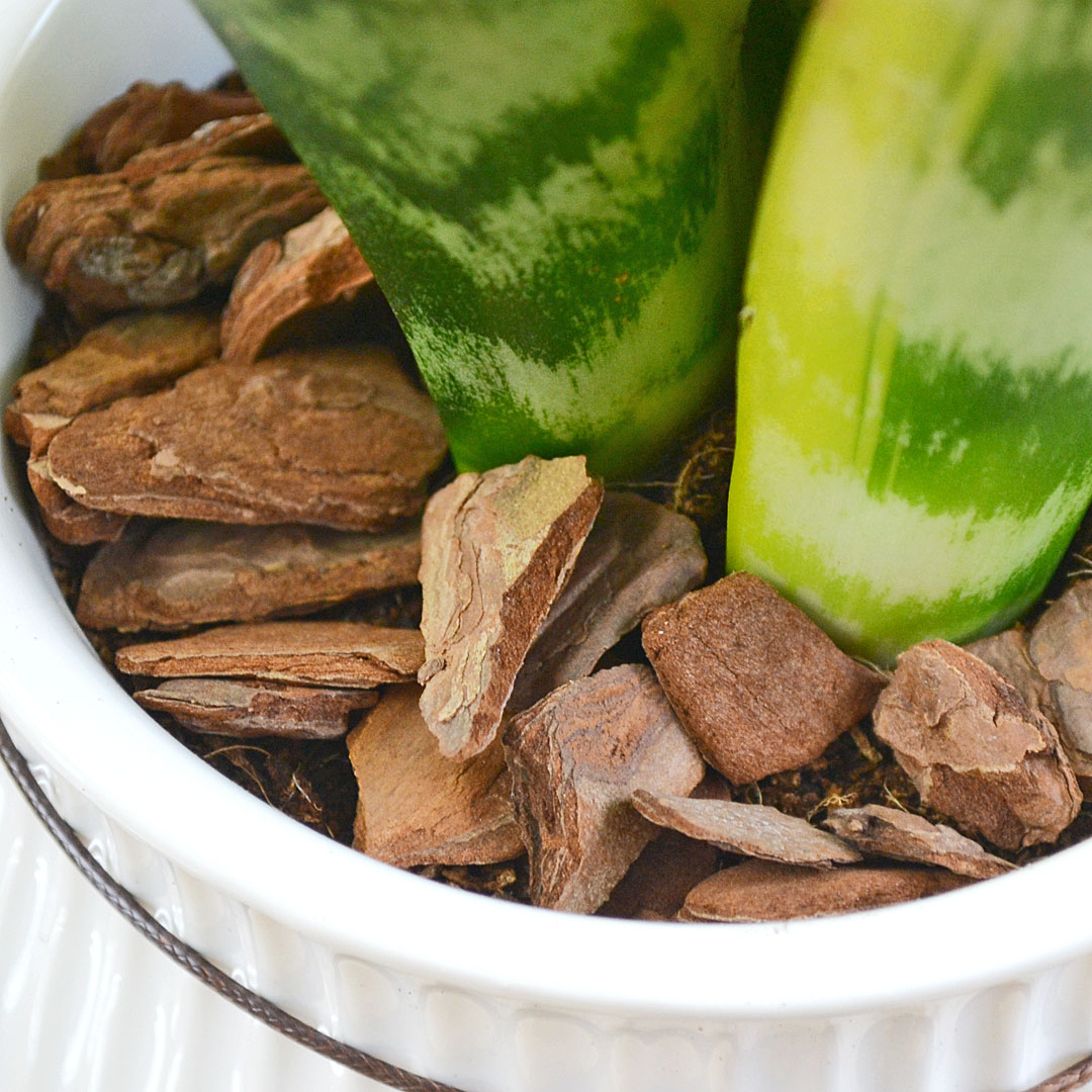 土の表面に敷くバーク付きです。水やりの際など土の表面を確認するときは取り除いてください。※バークチップの大きさや形状は変わる場合がございます。