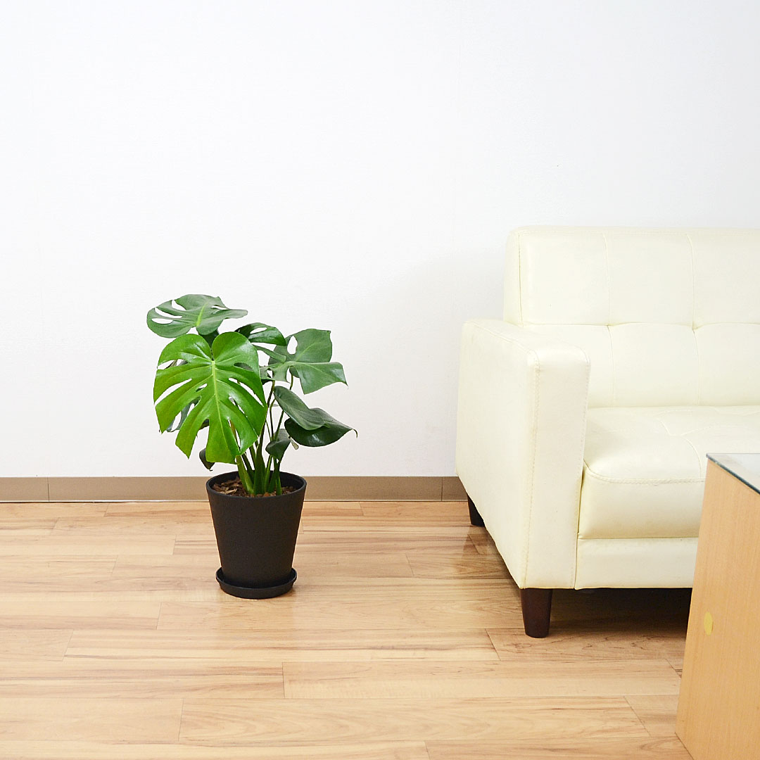 ホワイトとブラックから色を選べるおしゃれなプラスチック鉢を使った飾りやすい大きさのモンステラです。