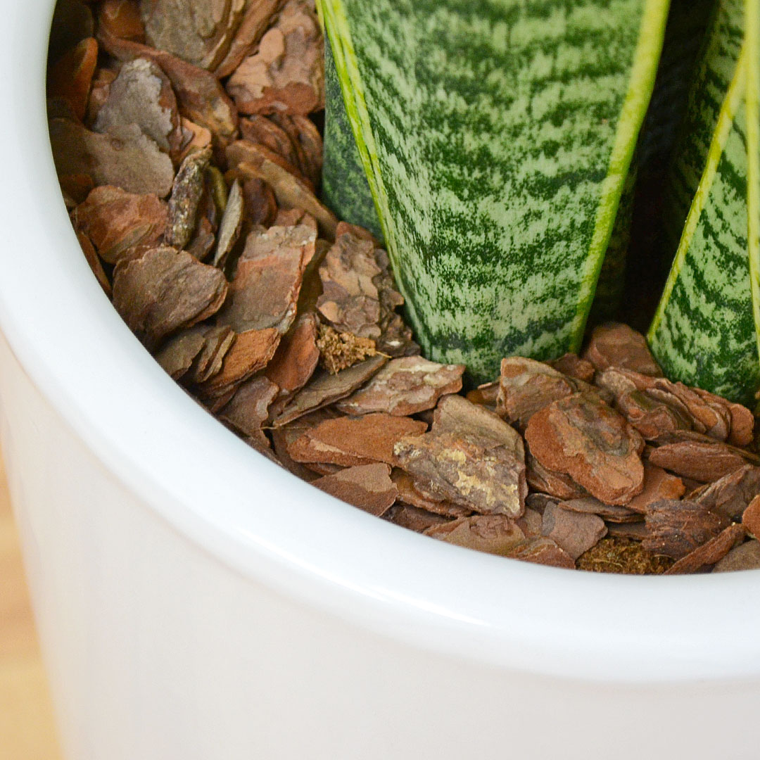 土の表面に敷くバーク付きです。水やりの際など土の表面を確認するときは取り除いてください。※バークチップの大きさや形状は変わる場合がございます。
