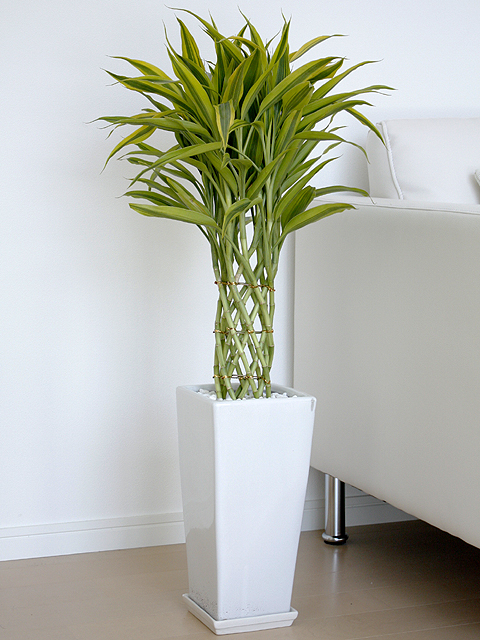 観葉植物 萬年竹 サンデリアーナ ロングスクエア陶器鉢植え × 1