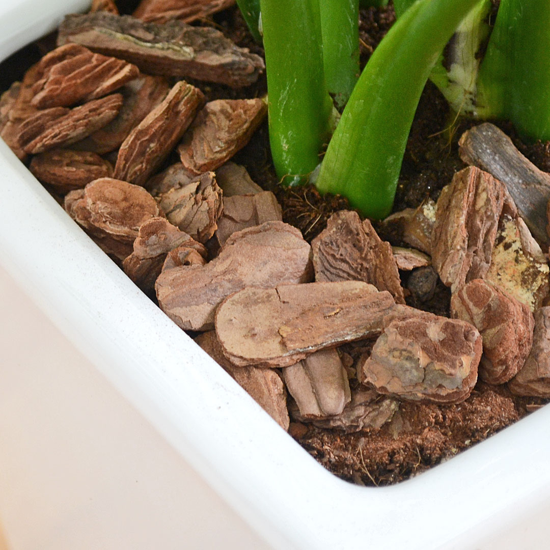 土の表面はバークチップを敷き詰め見栄えよくしました。水やりの際、土の表面を確認する時にご不要でしたら取り除いても構いません。※バークチップの大きさや形状は変わる場合がございます。