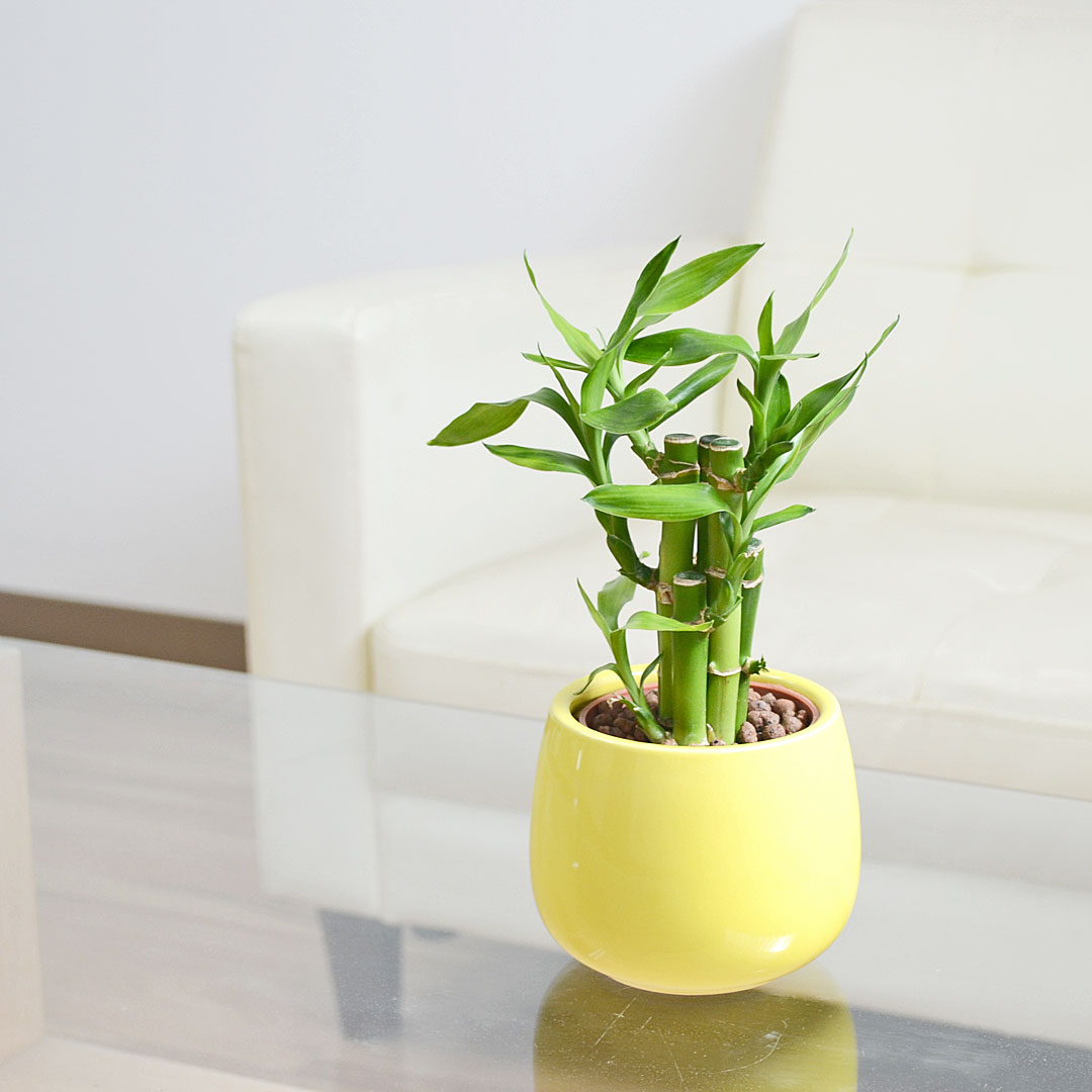ミニ観葉植物 ミリオンバンブー 陶器鉢付き(ハイドロカルチャー) x 1