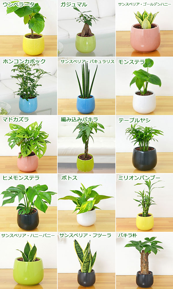 観葉植物の種類と陶器鉢の色を選べる誰にでも育てやすいハイドロカルチャー(水耕栽培)のミニ観葉植物です。