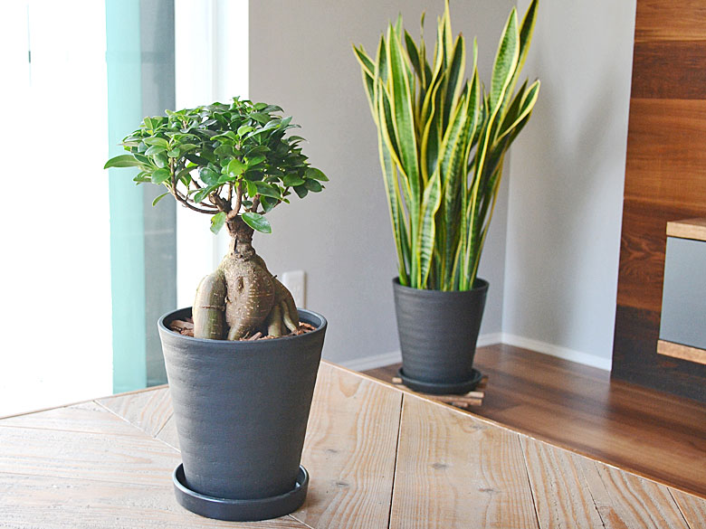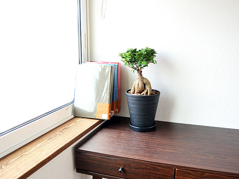 ガジュマルはユニークな形の幹と小さめの葉が変わらしいゴムの木の仲間の観葉植物で、沖縄県などに自生している親しみやすい観葉植物です。自生地では20m以上にもなる巨木ですが観葉植物として流通しているのは小さめのものが多いです。