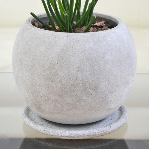 おしゃれなボール形のセメント鉢に植えました。ミルクブッシュとの相性抜群です。受け皿もついていますが、デザイン重視の皿のためそれほど水を受けられません。水やりの際は一度底穴から流れる水を切ってから皿にのせることをおすすめします。