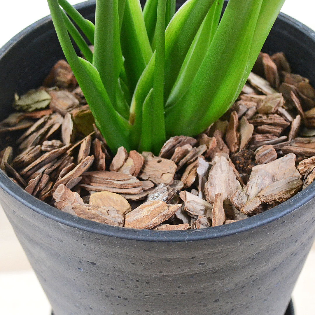 土の表面に敷くバーク付きです。水やりの際など土の表面を確認するときは取り除いてください。※バークチップの大きさや形状は変わる場合がございます。