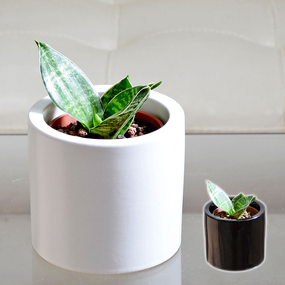 ミニ観葉植物 サンスベリア グリーンハニー ハイドロカルチャースタイリッシュ陶器鉢付き x 1